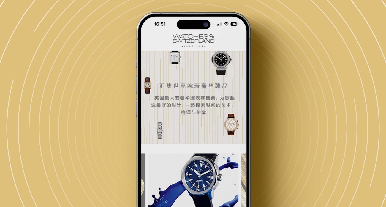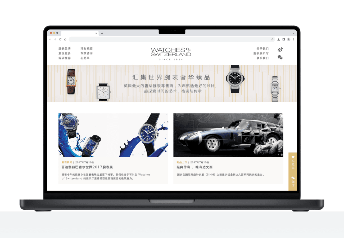 This website created for Watches of Switzerland helped Chinese users research possible high end watches that they could buy when they visited the United Kingdom.