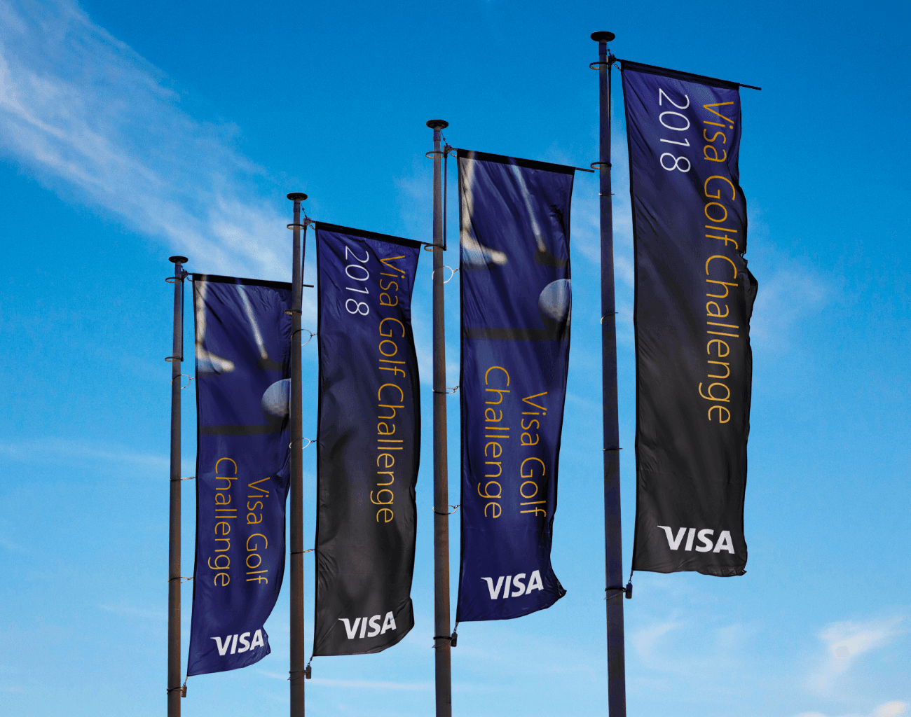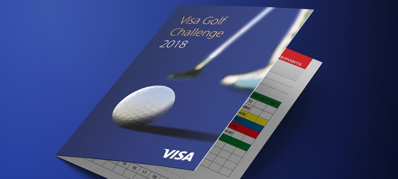 A golf event for members of staff for Visa using their affluent brand execution. Different to the wave which has been found historically in their brand.